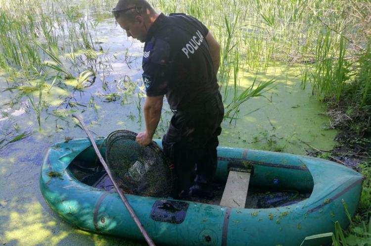 Podczas jednej z takich wspólnych służb mundurowi namierzyli mężczyznę, który wypłynął pontonem na rzekę Zgłowiączkę w powiecie włocławskim, a następnie rozstawił tam pułapkę na ryby tzw. więcierz. Kłusownik został zatrzymany, a przedmioty służące do nielegalnego połowu zabezpieczone przez funkcjonariuszy. Podczas przeszukania jego mieszkania policjanci znaleźli tam jeszcze więcej sieci.
