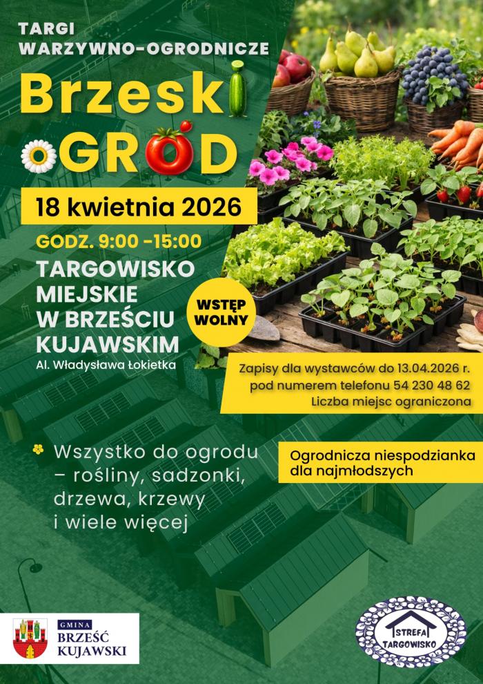 Wiosna w Brześciu Kujawskim nabierze zielonych barw. Już 18 kwietnia na Targowisku Miejskim przy al. Władysława Łokietka odbędą się Targi Warzywno-Ogrodnicze „Brzeski Ogród”. Między 9:00 a 15:00 będzie można kupić rośliny, sadzonki, drzewka i ogrodnicze akcesoria. Organizatorzy zapowiadają także atrakcje dla dzieci i spotkania z lokalnymi wystawcami. To dobra okazja, by złapać inspirację przed sezonem i sprawdzić, co w tym roku pojawi się w ogrodach oraz na balkonach mieszkańców.