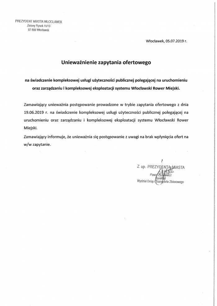 Poprosiliśmy również o stanowisko Z-cy Prezydenta Włocławka Krzysztofa Kukuckiego dlaczego zamiast zapowiadanych wcześniej 200 rowerów miejskich umowa ma obejmować 50. Na odpowiedź z magistratu nadal czekamy.