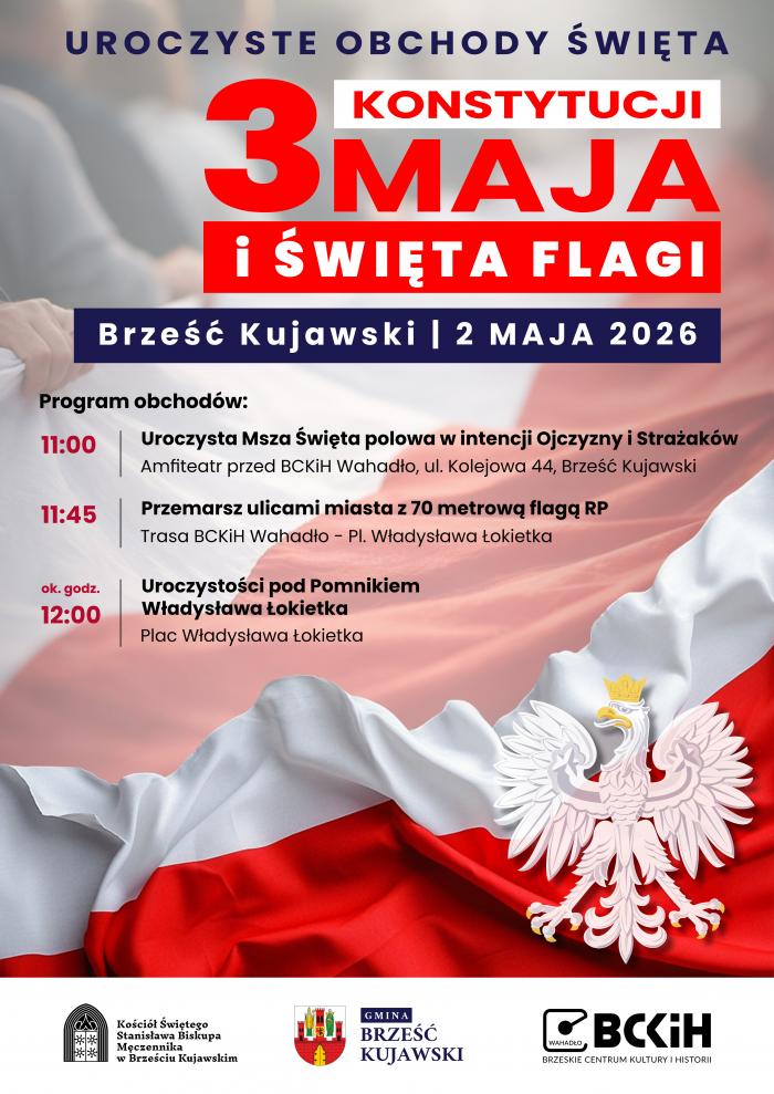 Brześć Kujawski już szykuje się na jedne z najbardziej uroczystych obchodów majówki w regionie. W sobotę, 2 maja 2026 roku, mieszkańcy wspólnie uczczą Święto Flagi i rocznicę uchwalenia Konstytucji 3 Maja. Będzie biało-czerwono, będzie podniośle, ale też bardzo lokalnie – z rozmachem, którego mogą pozazdrościć większe miasta.