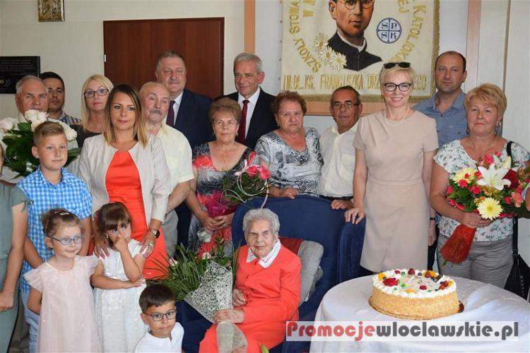 Podczas uroczystości z udziałem Ewy Braszkiewicz – Wójta Gminy Włocławek, Pawła Bogdanowicza – Przewodniczącego Rady Gminy Włocławek oraz innych zaproszonych gości zostały złożone Jubilatce życzenia, kwiaty oraz wręczono prezenty.