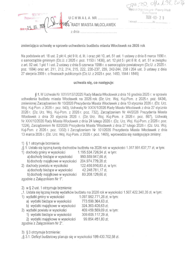 „Czy według władz miasta planowany deficyt jest bezpieczny dla finansów Włocławka i nie zagrozi realizacji innych zadań w 2026 roku?”