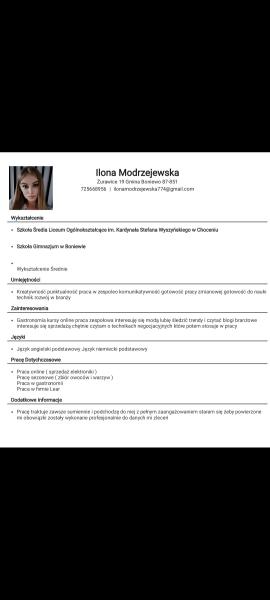 Witam jestem zainteresowana praca na terenie Boniewa opiekun