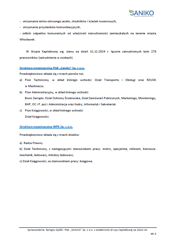 Nie bez znaczenia pozostaje fakt, że prezes Sylwia Wojciechowska kieruje jednocześnie dwiema spółkami – Saniko i Włocławskim Przedsiębiorstwem Komunalnym. W odpowiedzi na pytanie o ewentualny konflikt interesów czy ryzyko przeciążenia obowiązkami prezes wyjaśniła, że taki model zarządzania ma bardzo korzystny wpływ na organizację pracy i jest efektywny ekonomicznie.