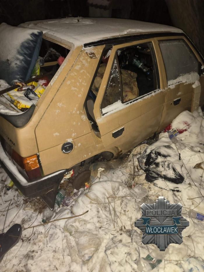 Funkcjonariusze ujawnili dwie osoby w kryzysie bezdomności, które schroniły się we wraku nieużywanego pojazdu. Auto stało na uboczu, bez szyb i realnej ochrony przed zimnem. Warunki w środku były skrajnie trudne. Już w pierwszych chwilach interwencji policjanci zauważyli objawy silnego wychłodzenia.