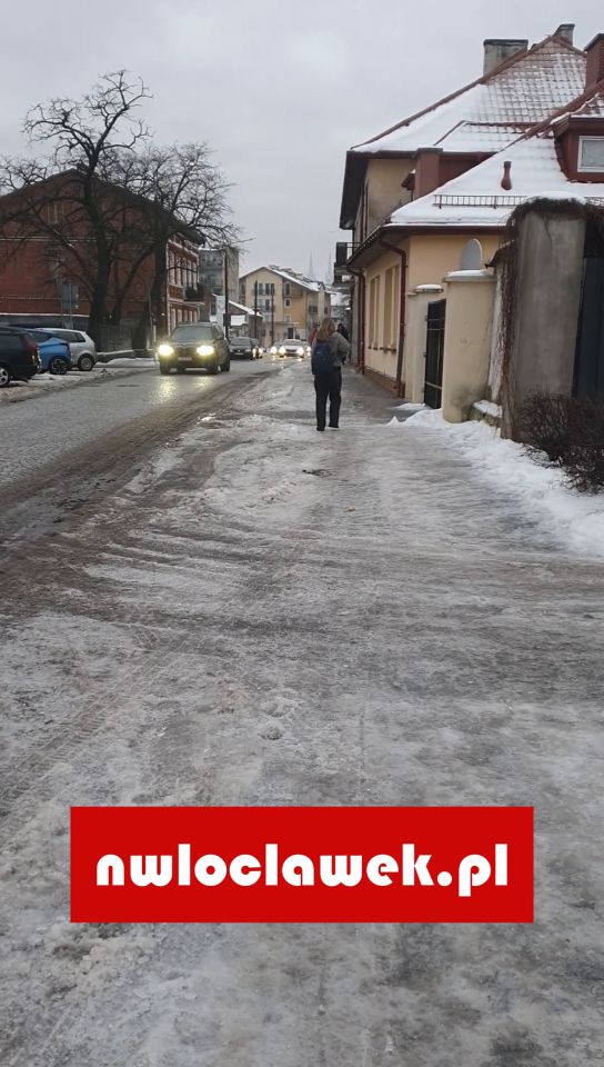 Lodowisko pod nogami we Włocławku. Mieszkańcy pytają o zimowe utrzymanie chodników [VIDEO]