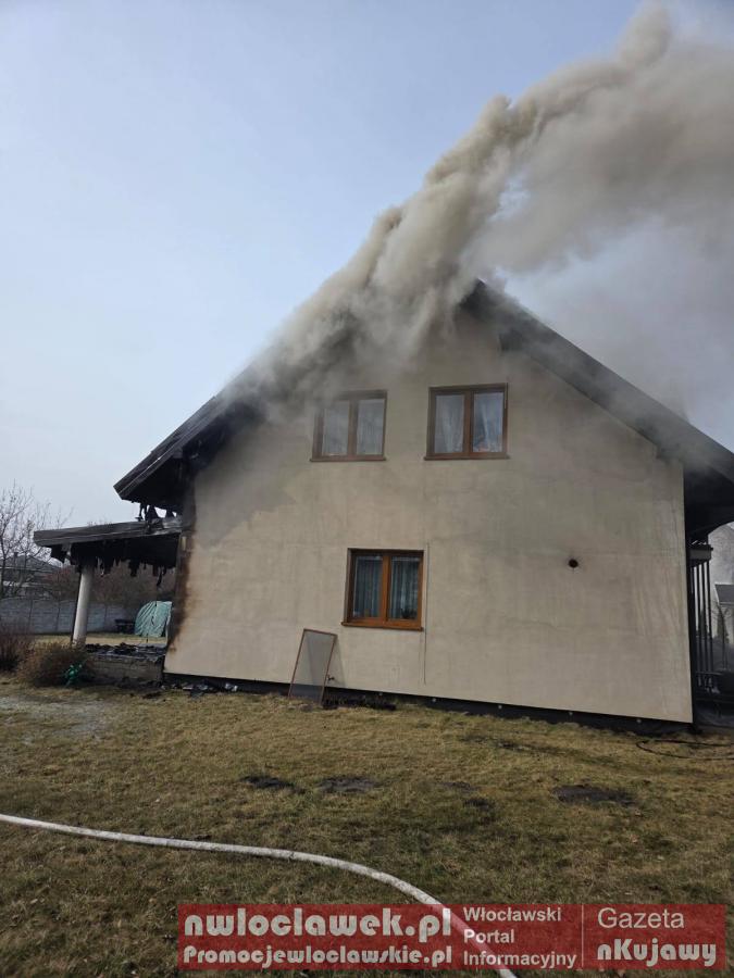 Groźny pożar w Dobrem w powiecie radziejowskim. Dach z fotowoltaiką w ogniu