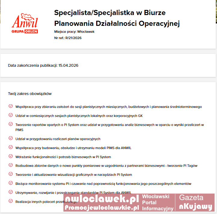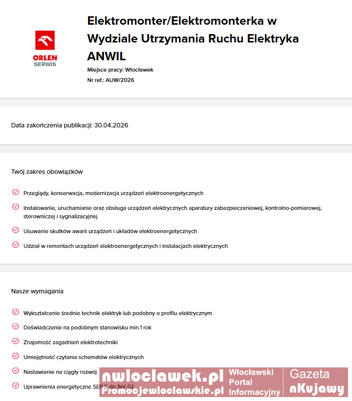 Nowe oferty pracy we Włocławku. ANWIL i ORLEN Serwis szukają ludzi