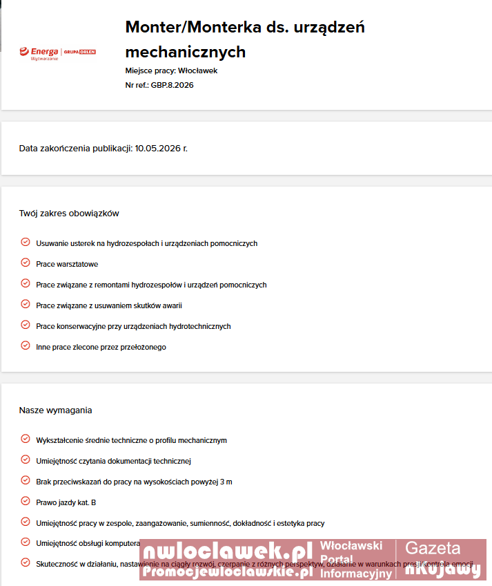 Oferty pracy we Włocławku. Energa i przedszkole szukają pracowników