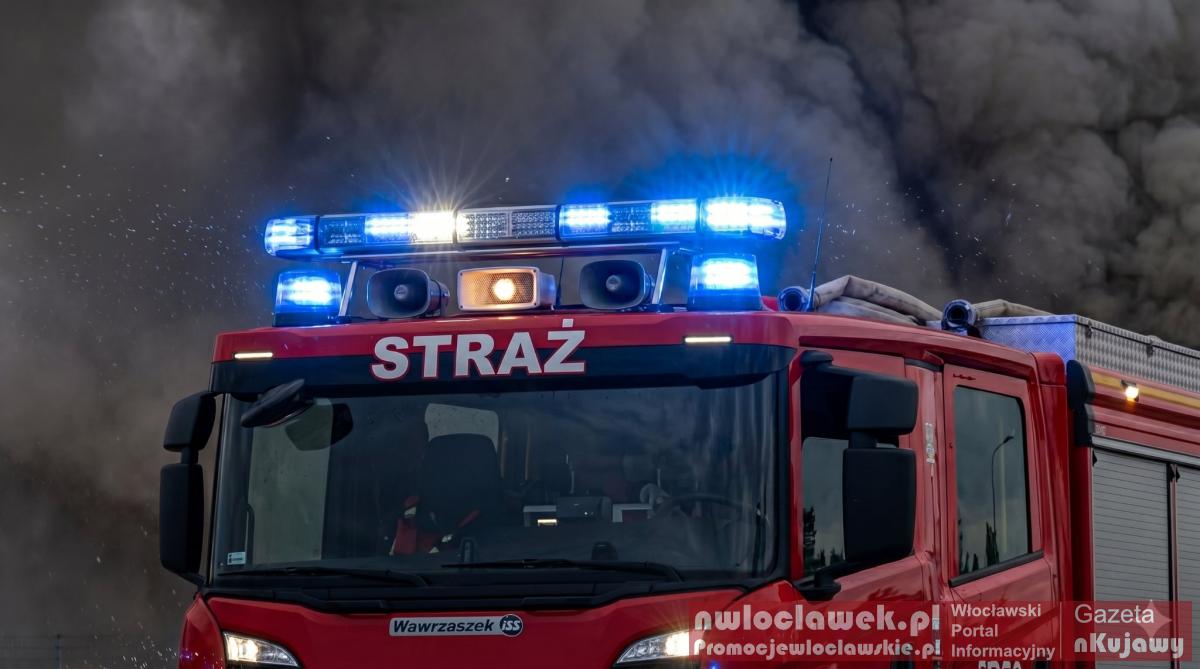 Pożar hali w powiecie włocławskim. DK91 zablokowana, na miejscu 20 zastępów straży