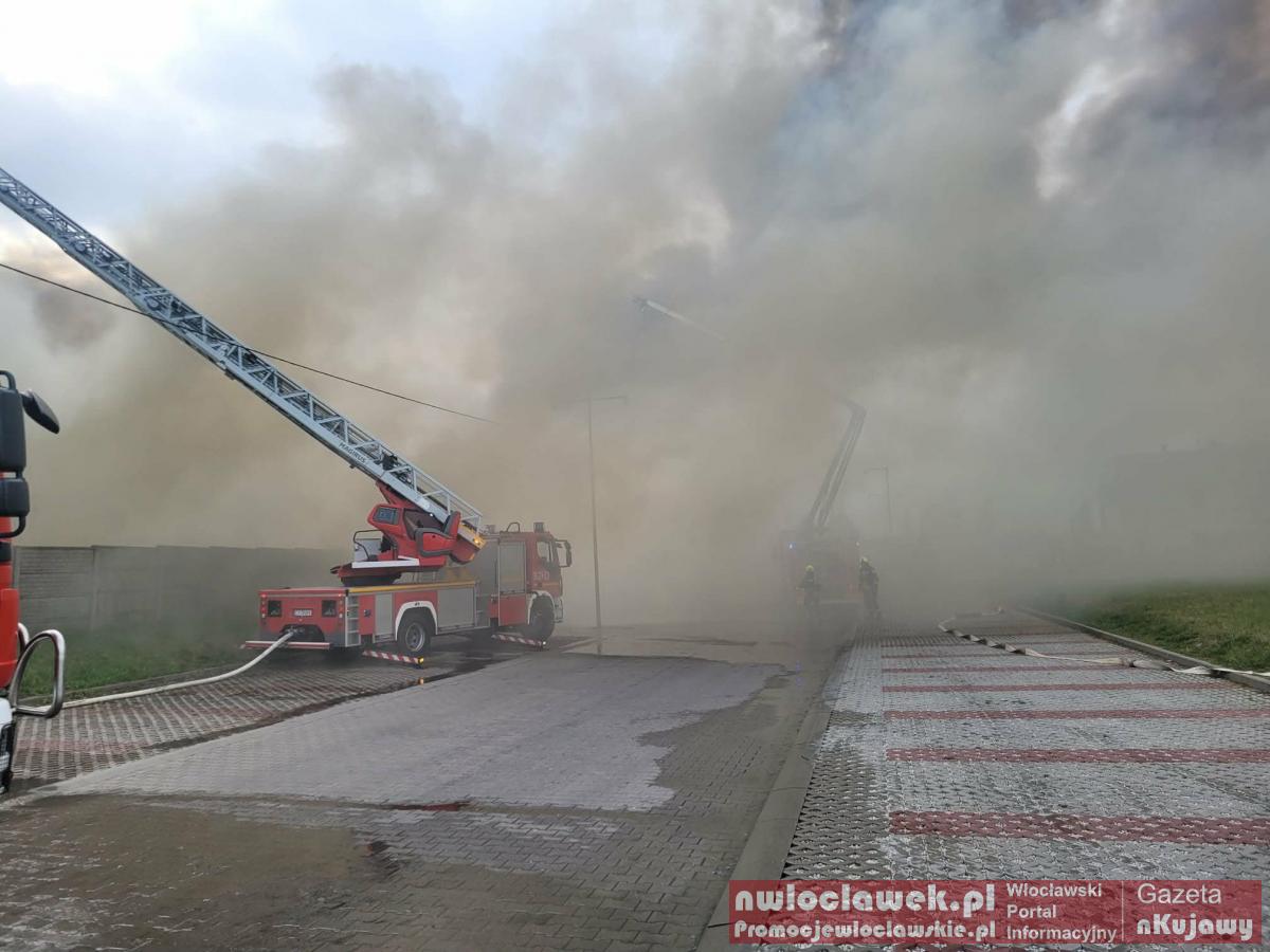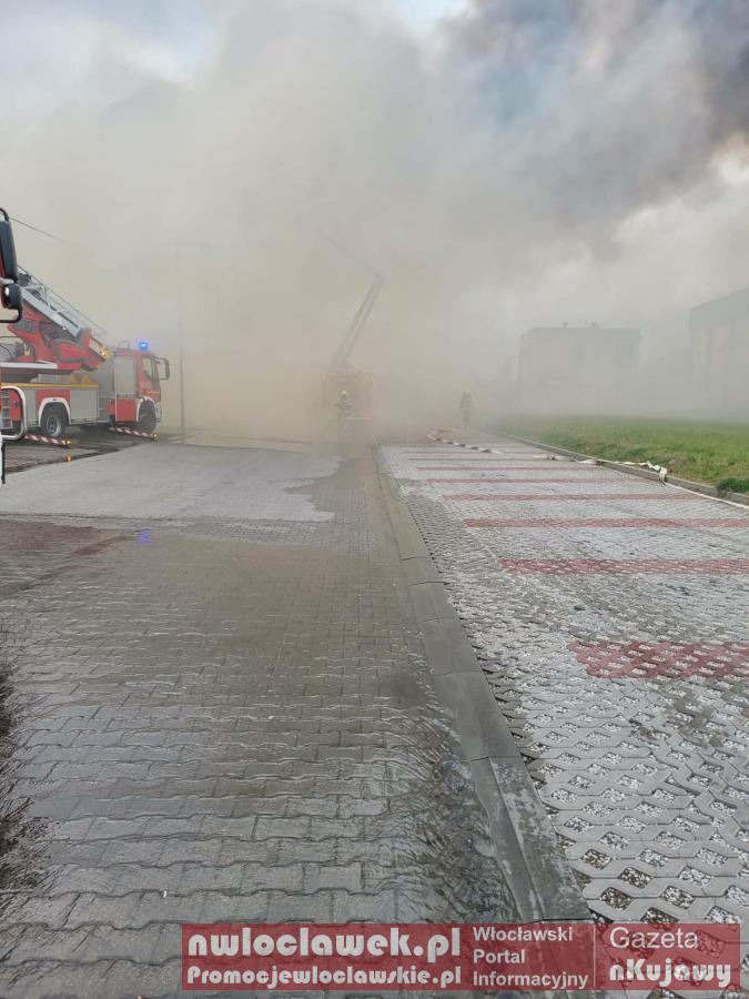 Zdjęcia Pożar hali w powiecie włocławskim. DK91 zablokowana, na miejscu 20 zastępów straży - fotorelacja