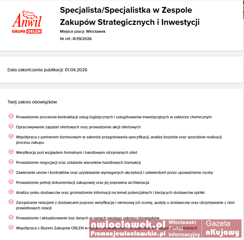 Praca Włocławek: Anwil rekrutuje