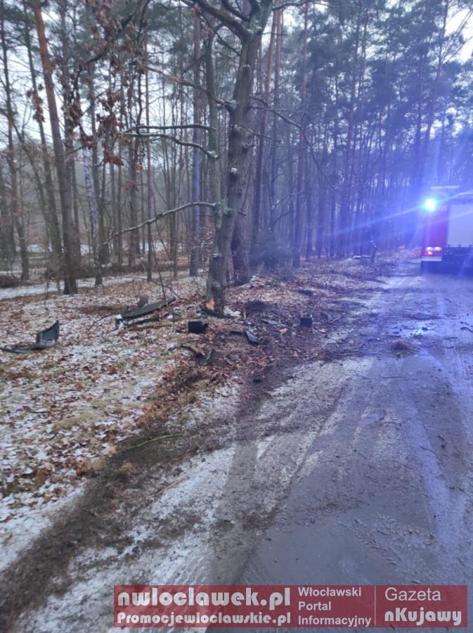 Galeria zdjęć z miejsca groźnego wypadku drogowego w Józefowie, gdzie samochód osobowy uderzył w drzewo, a strażacy z Włocławka udzielili szybkiej pomocy kierowcy. Akcja ratunkowa zakończona sukcesem, a ruch na drodze przywrócony. Apel strażaków o ostrożność na zimowych drogach.