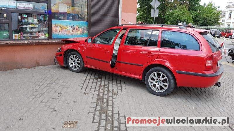Zdjęcia Skoda uderzyła w ścianę sklepu. Zderzenie dwóch samochodów we Włocławku [FOTO] - fotorelacja