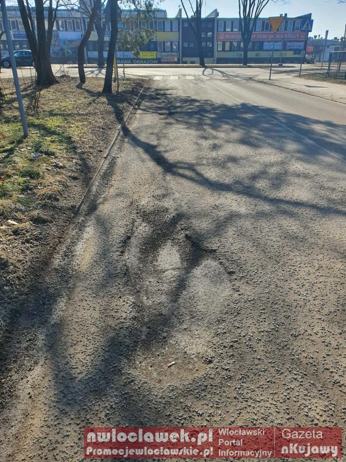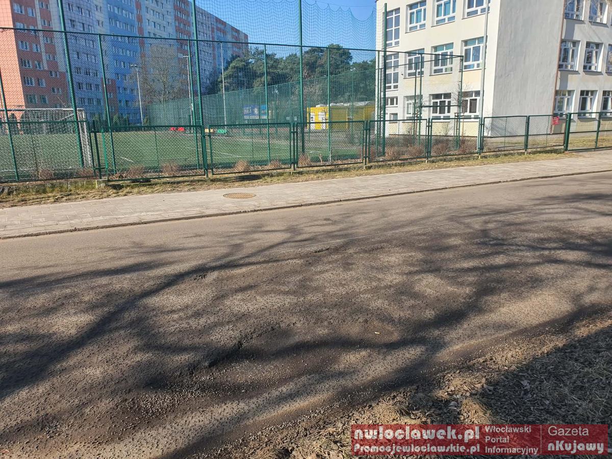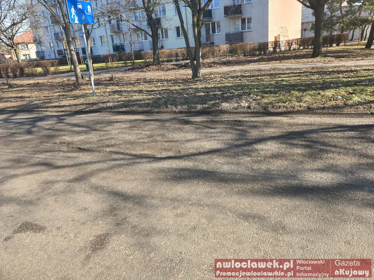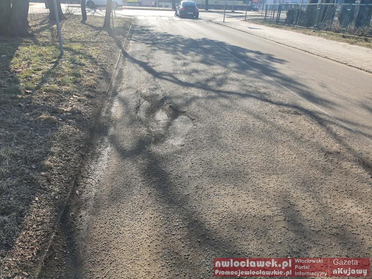Krajobraz po zimie we Włocławku – ubytki, piach i niedopałki