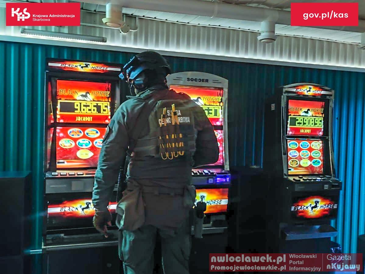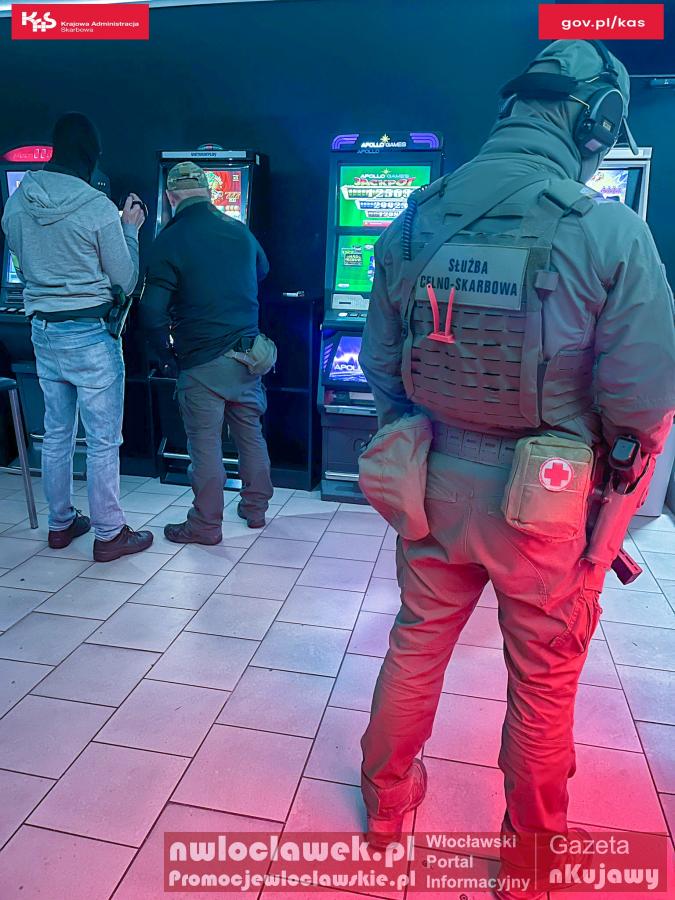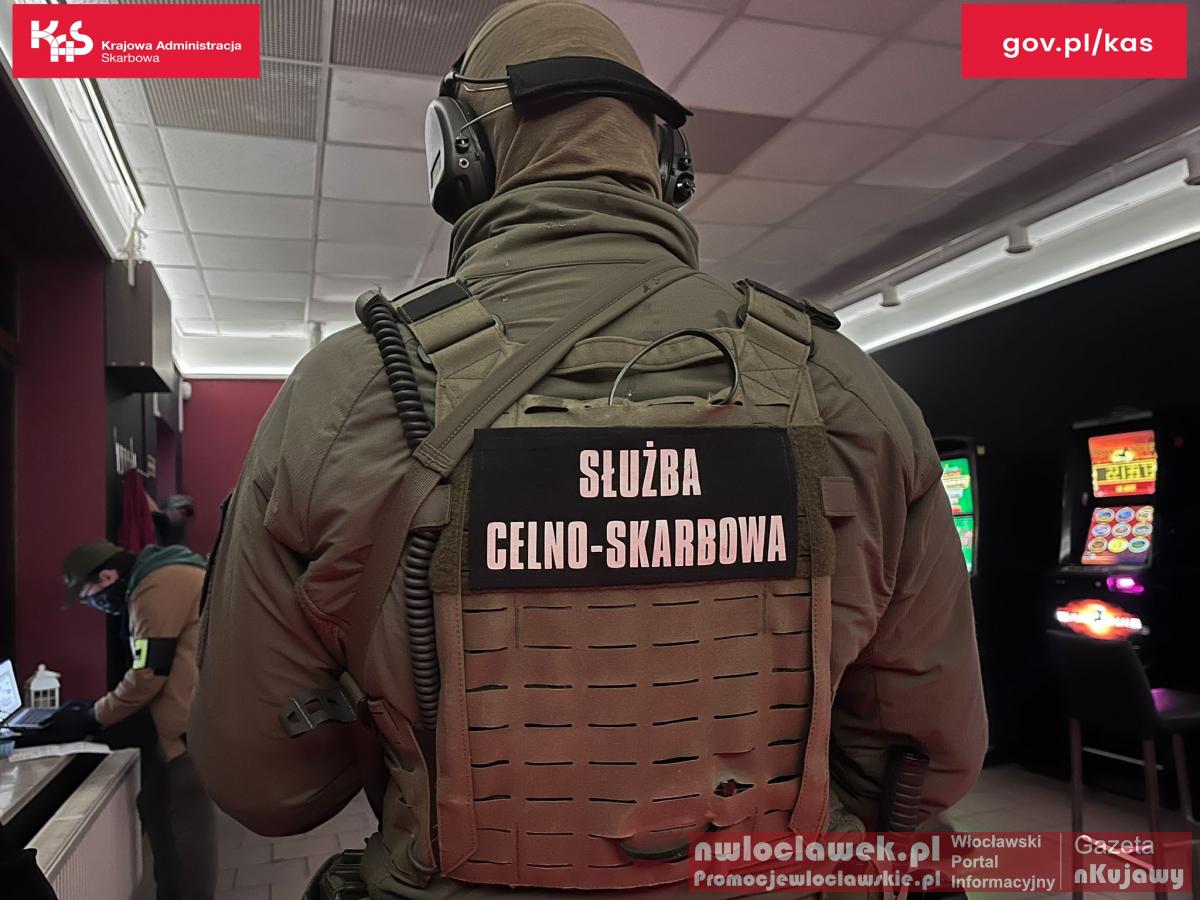 Funkcjonariusze Służby Celno-Skarbowej z Kujawsko-Pomorskiego Urzędu Celno-Skarbowego w Toruniu wspierani przez Grupy Zabezpieczenia Działań z Olsztyna i Poznania zlikwidowali w Włocławku 2 lokale z nielegalnymi grami hazardowymi. Zabezpieczono automaty, elektronikę, dużą sumę pieniędzy i zatrzymano 6 osób. Kobieta z narkotykami została przekazana policji. Wszyscy zatrzymani usłyszeli zarzuty związane z nielegalnym hazardem po przeprowadzeniu eksperymentów potwierdzających charakter gier.