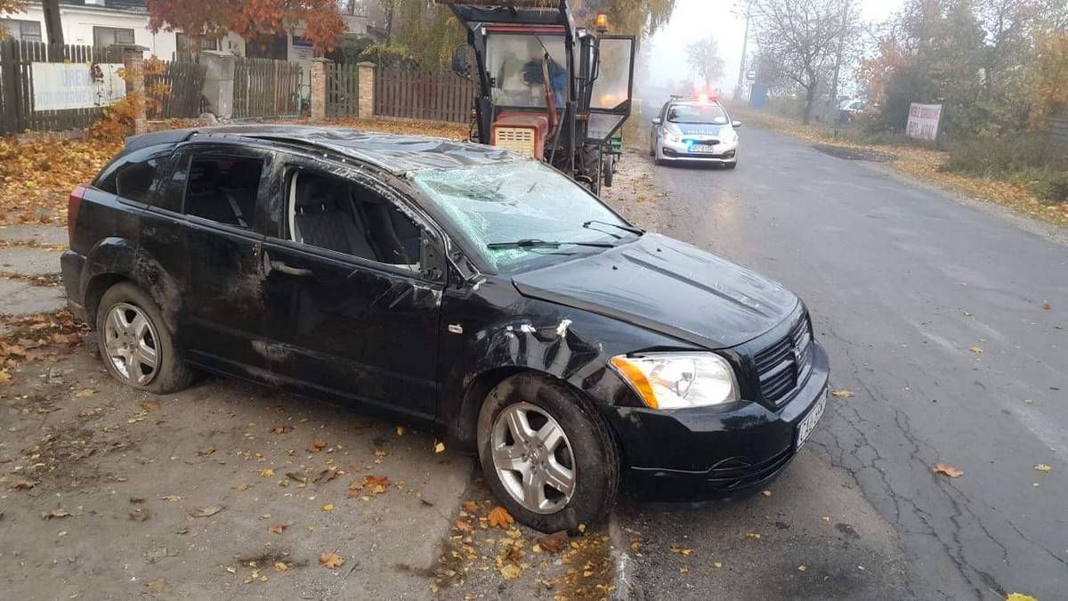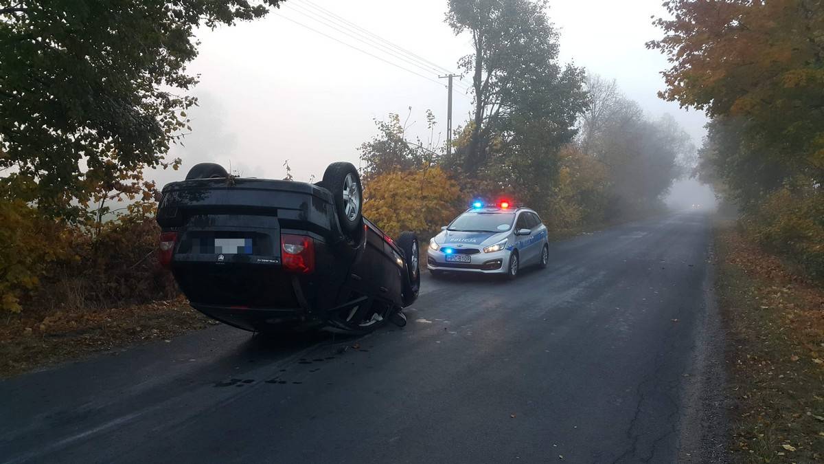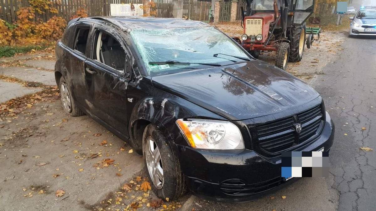 Wypadek w Żabieńcu w powiecie aleksandrowskim. Samochód dachował [FOTO]