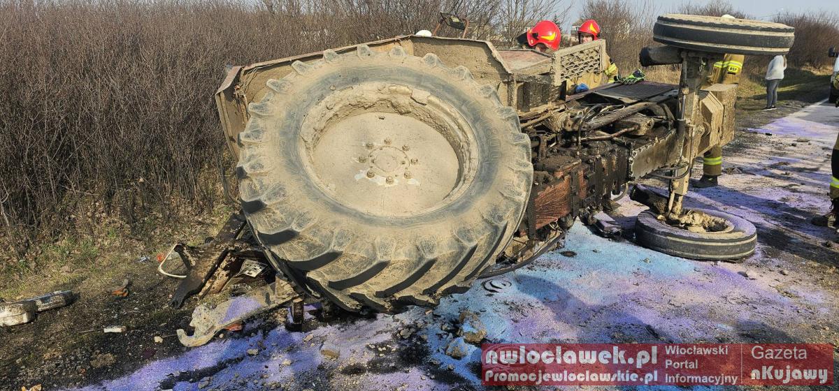 Zderzenie busa z ciągnikiem na DK62. Traktor przewrócony, droga całkowicie zablokowana