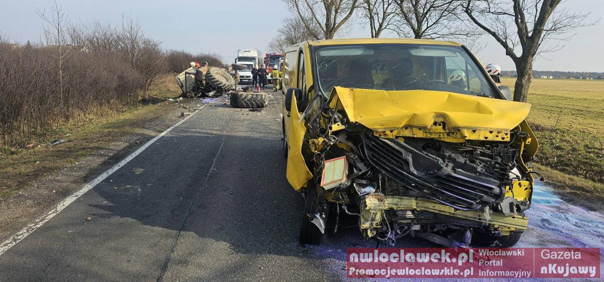 Zderzenie busa z ciągnikiem na DK62. Traktor przewrócony, droga całkowicie zablokowana