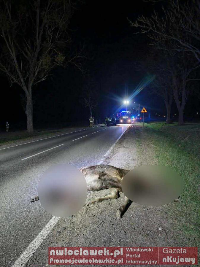 Zdjęcia Zderzenie z łosiem pod Włocławkiem. 37-latek ciężko ranny - fotorelacja